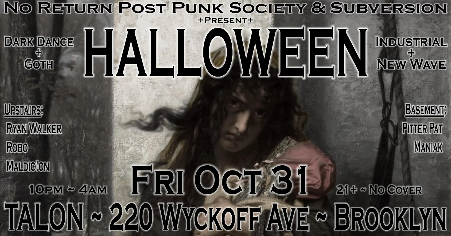 Join us in celebrating Halloween on Friday, October the 31st with a two floor dark dance party at Talon Bar! No Return Post Punk Society upstairs & Subversion downstairs with 5 DJs! Free entry!